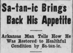 As late as 1933, advertisements for the Sa-Tan-Ic Medicine and Manufacturing Company continued to appear in Kansas newspapers, though the brand's glory days were long gone. Today, there are very few alive who can still recall the demonic tonic and its distinctive packaging, though there just might be a bottle of Sa-Tan-Ic gathering dust in your local antique shop.