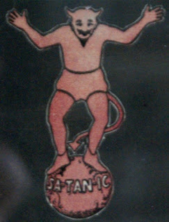 Of all the forgotten remedies and cures peddled by snakeoil manufacturers of the 19th and early 20th centuries, a special place in my heart is reserved for Sa-Tan-Ic Tonic, which promised to cure virtually every "stomach, kidney and liver complaint". Of course, since I'm also fascinated by demonology and the bizarre (hence the name of this website), what I really love is the advertising, which featured an enormous devil in his underwear (I think) trampling the earth.
